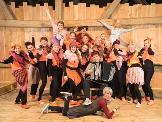 entstanden sind viele kleine — wahre und erfundene - Szenen und Geschichten entlang unserer neu erstellten Dorfstrasse. Verbunden und in Schwung gehalten durch einen energievollen Chor.